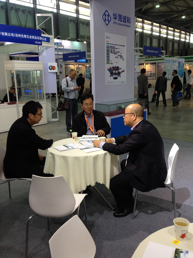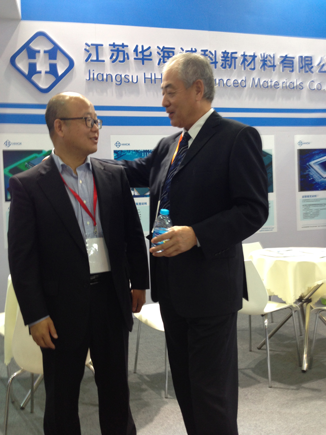 江蘇華海誠(chéng)科在第十二屆IC CHINA 展會(huì)上的展區(qū)公司領(lǐng)導(dǎo)與客商熱情交談